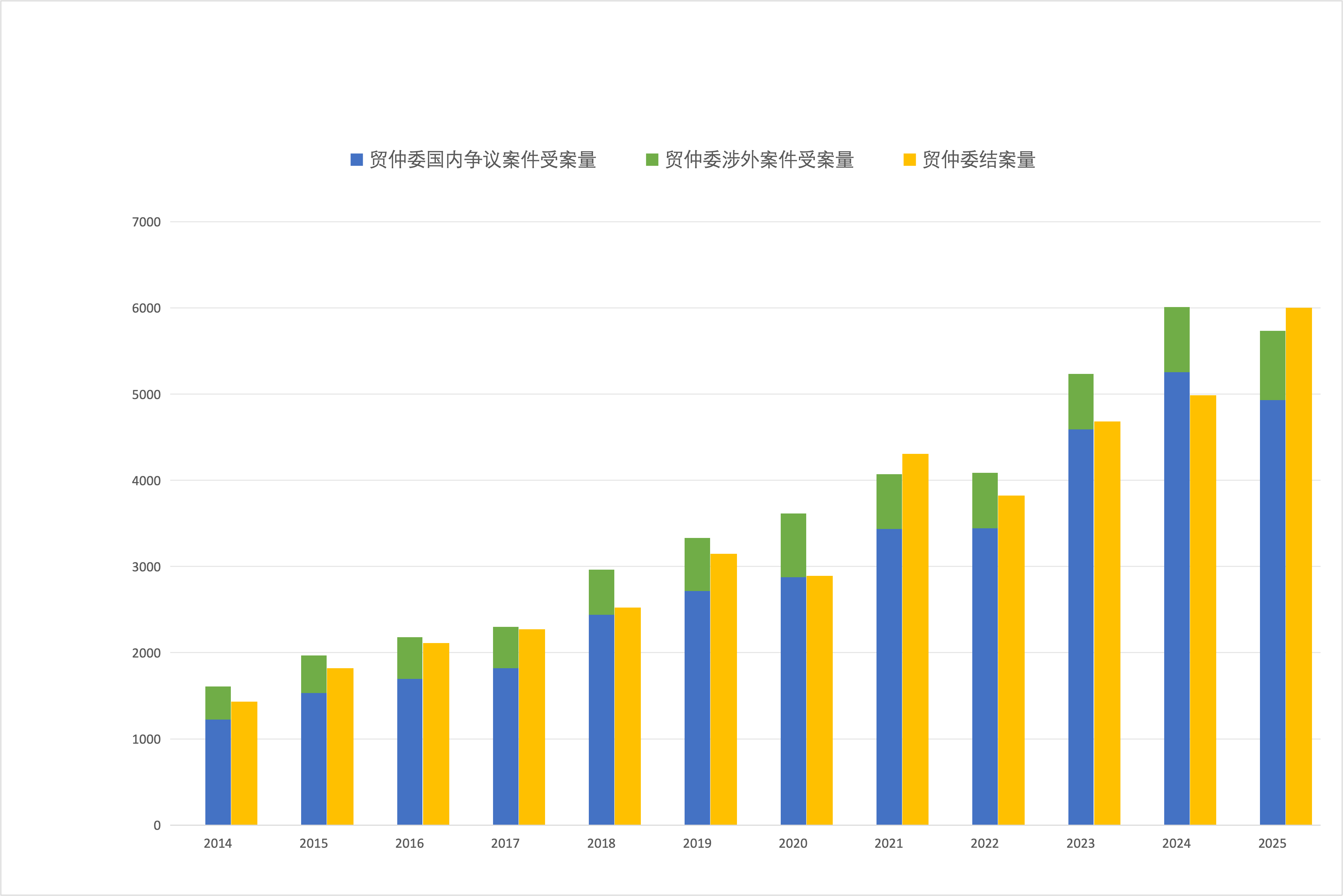 年度 贸仲委受案总量(涉外、国内) 贸仲委涉外案件受案量 贸仲委国内争议案件受案量 贸仲委结案量